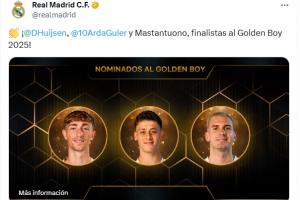 因与《法国足球》关系不佳,皇马此前并未在社媒或官网祝贺入选金球候选的球员,但这次他们在社媒和官网都祝贺了赫伊森、居莱尔和马斯坦托诺。